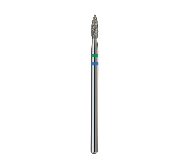 This bit with combined abrasiveness (green-blue) is specifically designed for cuticle treatment, sidewalls, and subcutaneous space. Suitable for both soft and tougher skin. Its characteristics make it ideal for working on delicate areas, as well as removing pterygium.