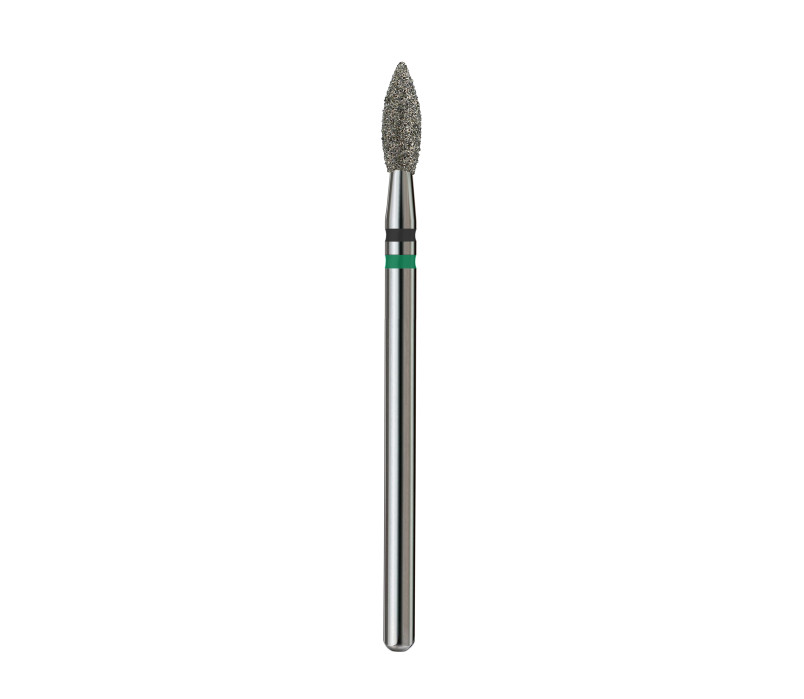 This bit with combined abrasiveness (black + green) is designed for cuticle treatment, sidewalls, and subcutaneous space, as well as for removing pterygium. The black abrasive is used for tougher areas, while the green is suitable for finer and more sensitive skin. The bit is perfect for working on both tough and more delicate skin.
