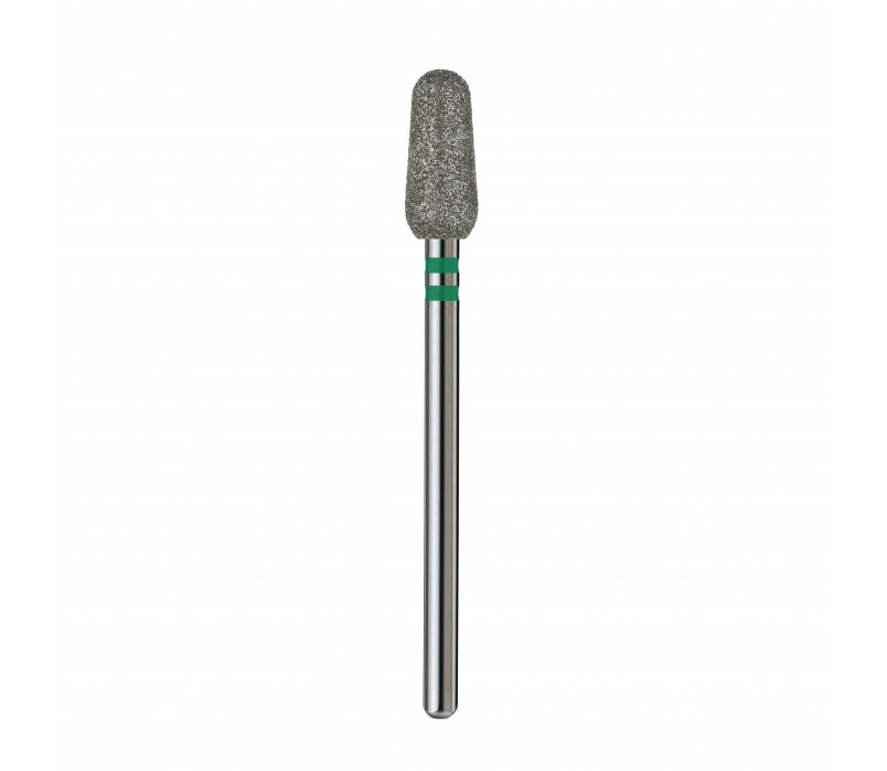 Frez diamentowy Stożek zaokrąglony 5.0 green (Premium) przeznaczony jest do opracowywania wałów bocznych, skórek oraz korekcji kształtu paznokci. Dzięki grubej ziarnistości idealnie nadaje się do pracy z twardą skórą, zrogowaciałymi fragmentami oraz twardszym materiałem. Duża średnica zapewnia szybkie i skuteczne działanie.