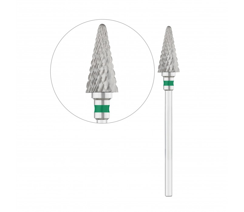 Фреза предназначена для быстрого и эффективного снятия искусственных покрытий (гель, акрил), а также для коррекции формы ногтей. Грубая абразивность (зелёная насечка) обеспечивает высокую производительность.